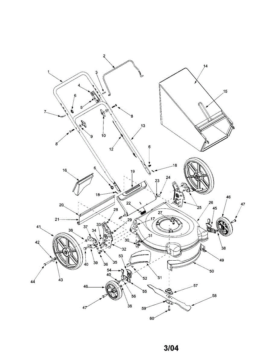 Collects grass clippings for disposal or composting. Replace if torn, punctured, or damaged to maintain effective clippings collection. Verify fit.