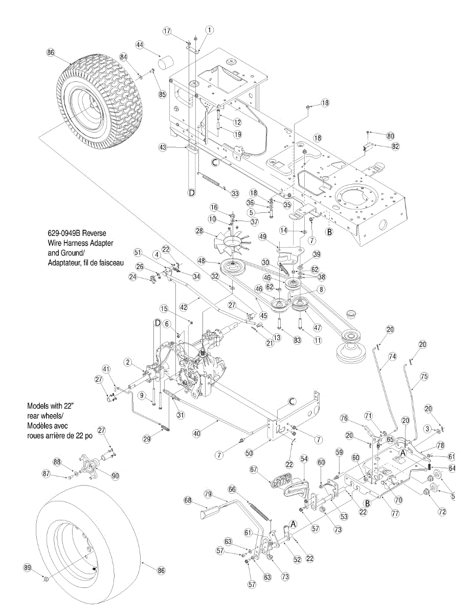 Complete rear wheel assembly with tire and rim for lawn tractors. Replace damaged, cracked, or worn wheels to restore stability and safe operation.