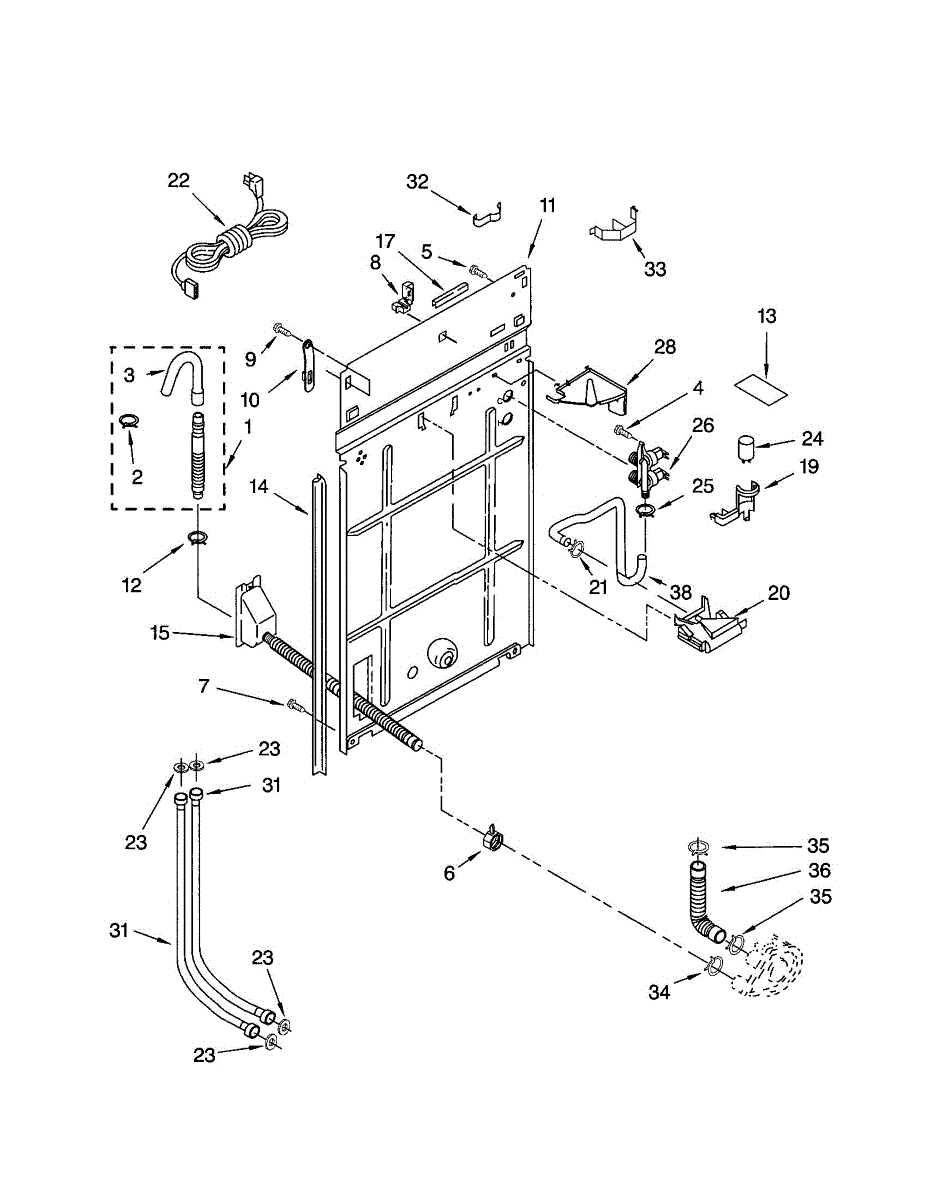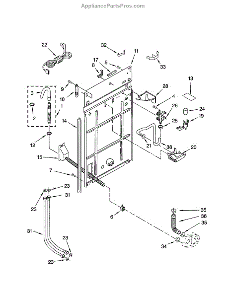 Rear panel pad cushions and insulates the appliance's rear cabinet to reduce vibration, noise and rubbing against the back panel. Replacing a damaged pad helps stop rattles and protects internal components from wear. What it does:
