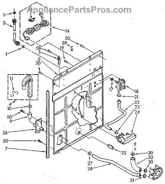 Replaces the vacuum break inlet hose connecting the water inlet to your washer tub. Needed when original hose is cracked, burst, leaking, or damaged.