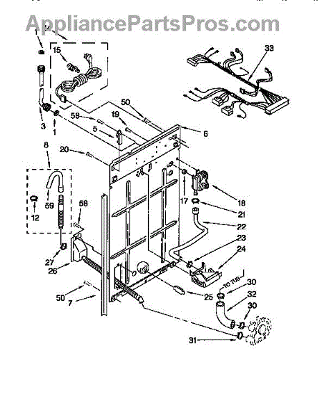 Replaces the vacuum break inlet hose connecting the water inlet to your washer tub. Needed when original hose is cracked, burst, leaking, or damaged.