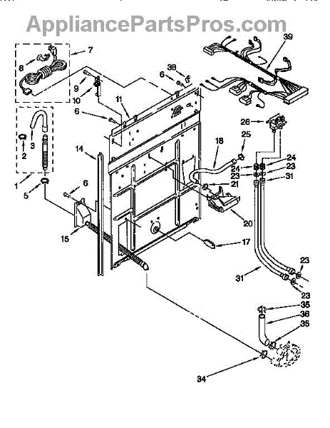 Replaces the vacuum break inlet hose connecting the water inlet to your washer tub. Needed when original hose is cracked, burst, leaking, or damaged.