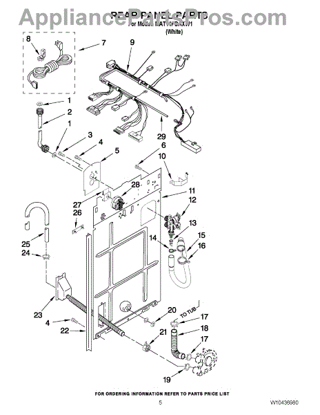 This anchored hose assembly routes water safely inside the appliance and secures in place to prevent movement and kinking for reliable flow. Use it when a worn or damaged hose causes leaks, poor draining, or noise. What it does
