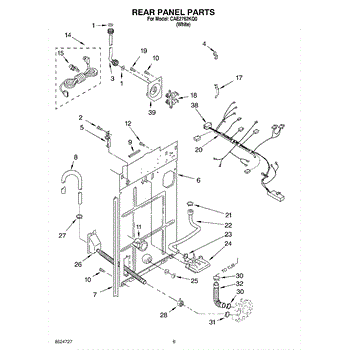 This rear panel support is the structural bracket that secures the appliance's rear cover/backguard in place. Replacing a worn or broken support restores proper alignment, helps protect internal components, and reduces vibration noise.