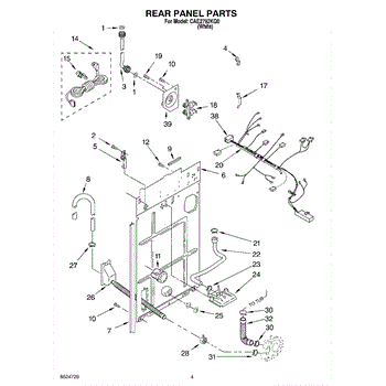 This rear panel support is the structural bracket that secures the appliance's rear cover/backguard in place. Replacing a worn or broken support restores proper alignment, helps protect internal components, and reduces vibration noise.