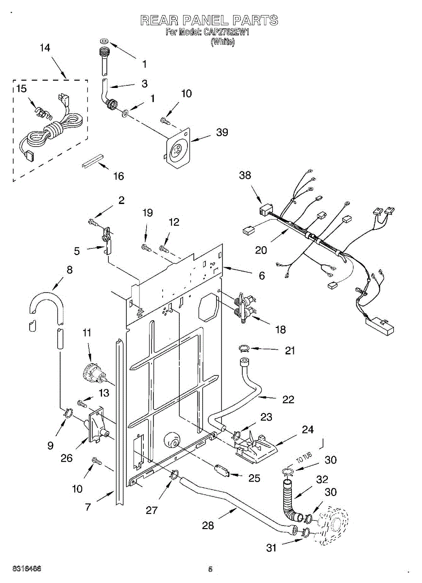 Replaces the vacuum break inlet hose connecting the water inlet to your washer tub. Needed when original hose is cracked, burst, leaking, or damaged.