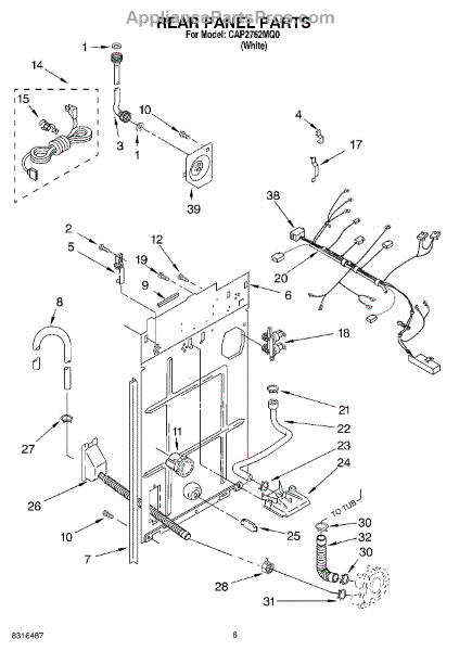 This rear panel support is the structural bracket that secures the appliance's rear cover/backguard in place. Replacing a worn or broken support restores proper alignment, helps protect internal components, and reduces vibration noise.