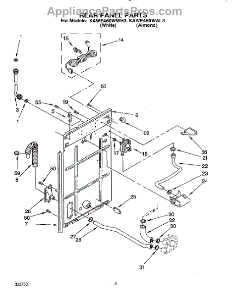 Parts for Kitchenaid KAWE460WAL3: 03 - Rear Panel Parts