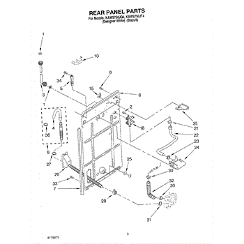 This rear panel support is the structural bracket that secures the appliance's rear cover/backguard in place. Replacing a worn or broken support restores proper alignment, helps protect internal components, and reduces vibration noise.