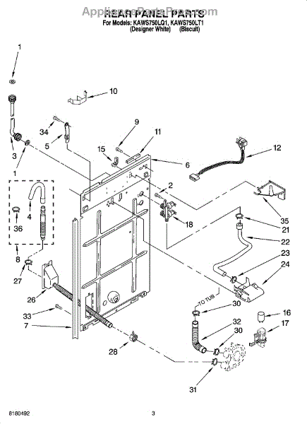 This anchored hose assembly routes water safely inside the appliance and secures in place to prevent movement and kinking for reliable flow. Use it when a worn or damaged hose causes leaks, poor draining, or noise. What it does