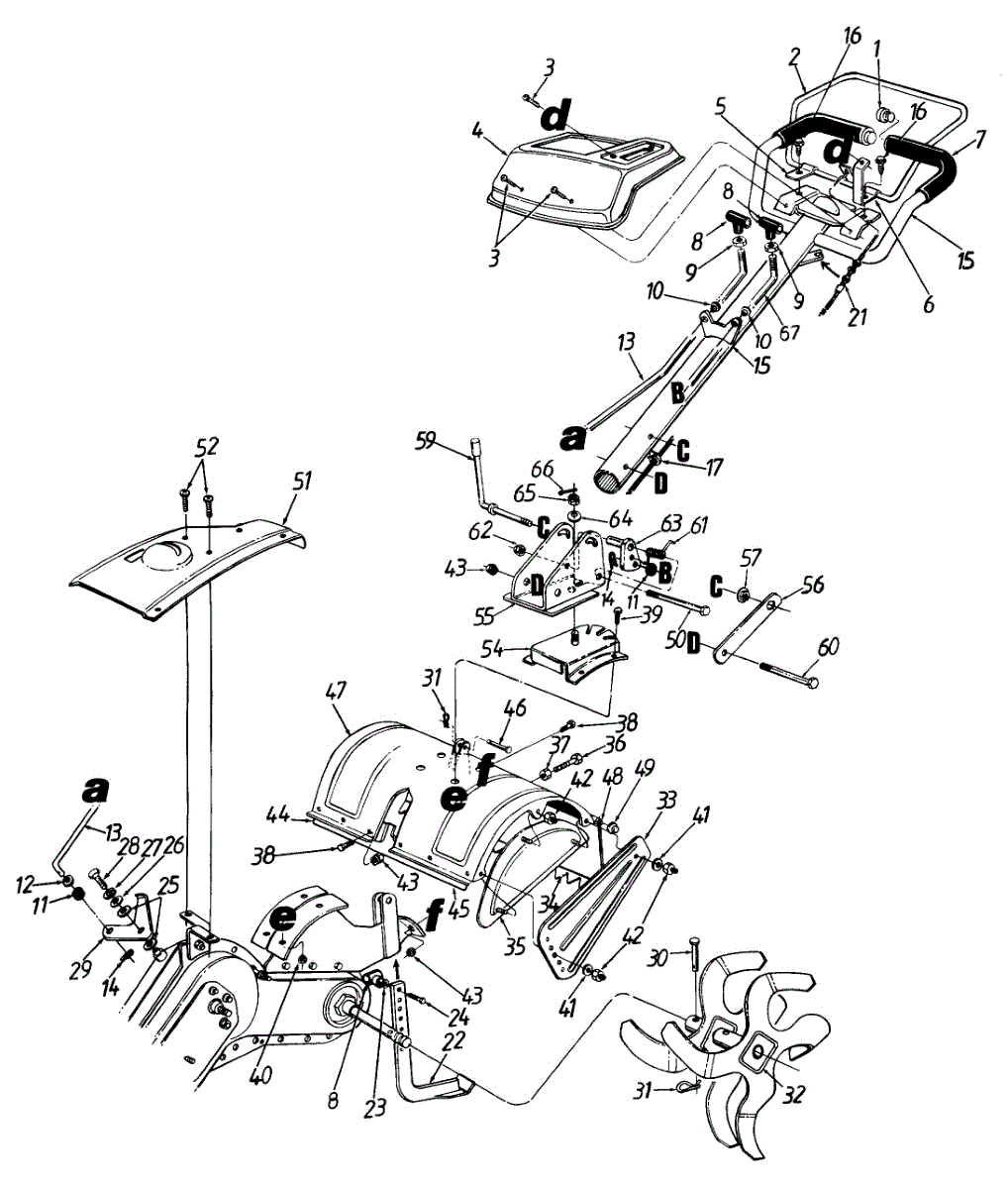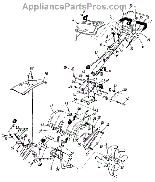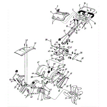 Protective shield that covers the tines on your tiller. Replace if cracked, broken, or missing to prevent debris from flying up during operation.