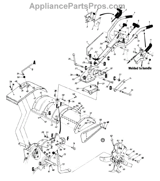 Replacement debris guard flap for rear-tine tillers. Shields operator from flying rocks and soil. Replace if torn, cracked, bent, or missing.