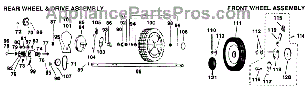 Parts for Mastercut 121-770R702: Rear Wheel & Drive Assembly, Front Wheel Assembly Parts