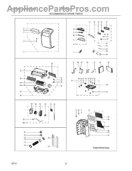 Parts for Frigidaire CRA07EPU11: 03 - Recommended Spare Parts