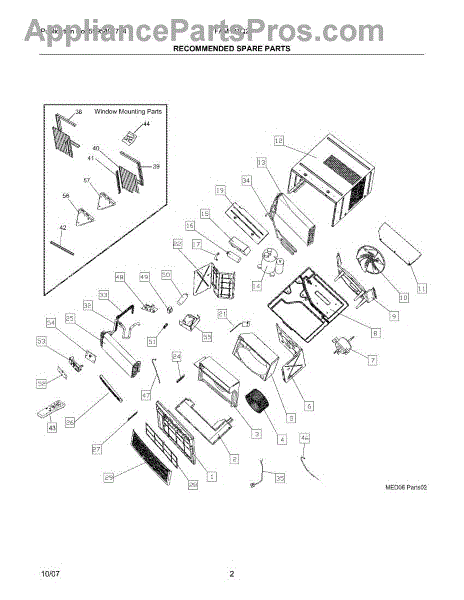 Front panel for air conditioner units. Replaces cracked, broken, or missing panels on the exterior housing. Direct fit cosmetic component.