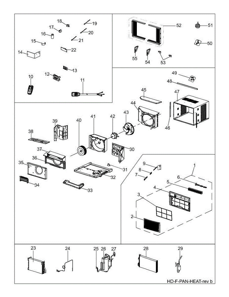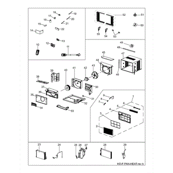 Front panel assembly for air conditioners. Replaces cracked, broken, or worn front trim. Essential cosmetic component that covers the unit's interior.