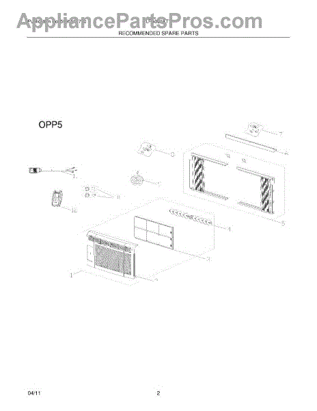Parts for Frigidaire LRA050XT715: 03 - Recommended Spare Parts
