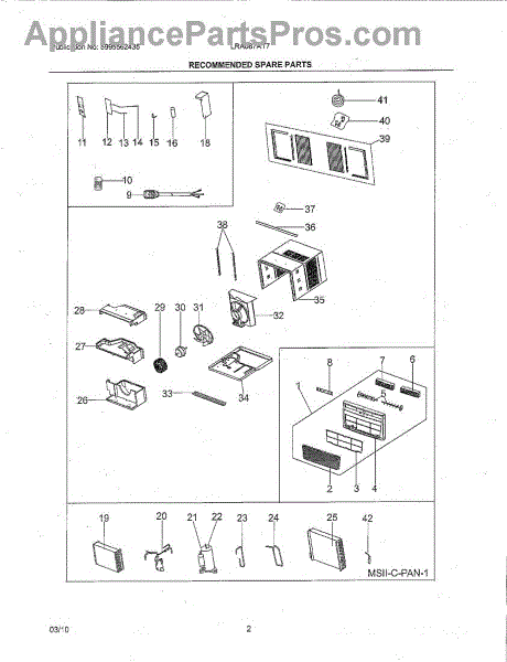 Parts for Frigidaire LRA087AT71: 03 - Recommended Spare Parts