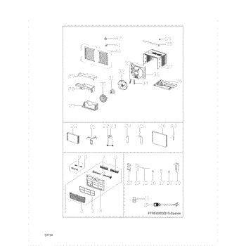 Mounting hardware kit for room air conditioners. Includes screws, brackets, and fasteners needed to securely install your unit in the window frame.