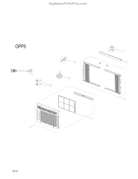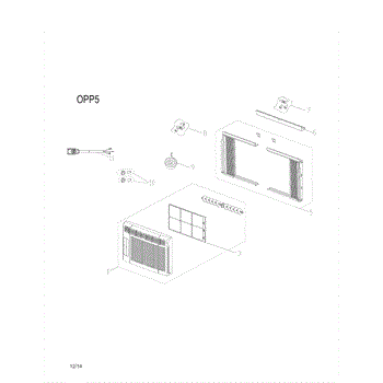 Mounting hardware kit for room air conditioners. Includes screws, brackets, and fasteners needed to securely install your unit in the window frame.