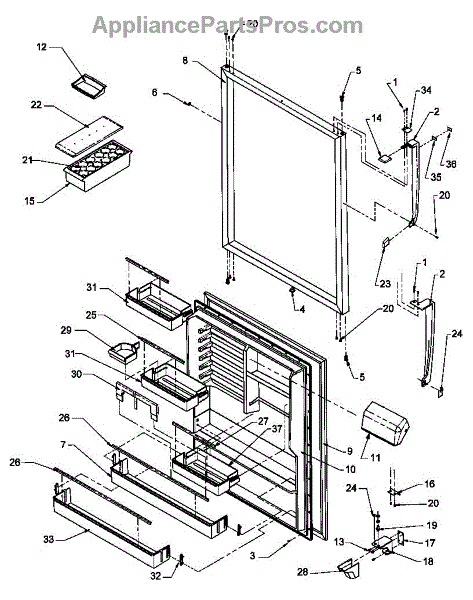 Parts for Amana THI21S3L-P1194701WL: Ref Door Assy Parts