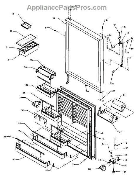 Parts for Amana TR25S5L-P1196401WL: Ref Door Assy Parts
