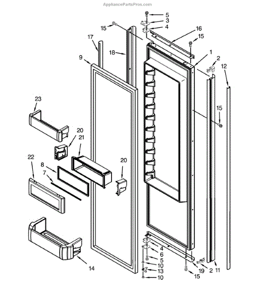 The Dairy Bin is an OEM replacement part for Whirlpool's built-in and integrated refrigerator side-by-side door shelves. It provides a designated space optimized for storing dairy products.