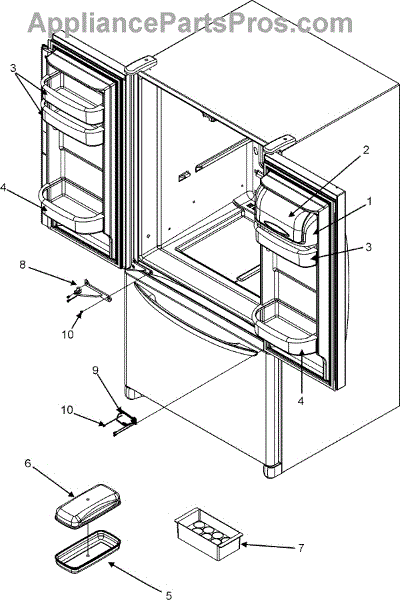 This refrigerator door bin is the large "gallon" shelf that snaps into the fresh food door. It restores secure storage for milk jugs and tall bottles when the original bin is cracked, loose, or missing.