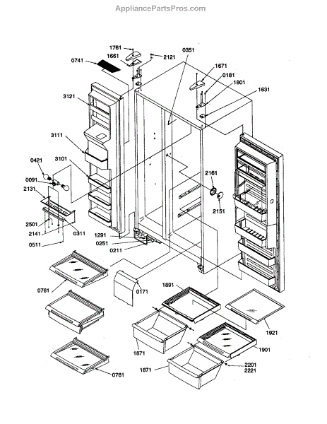 Parts for Amana SSD25TW-P1314201WW: Ref / Frz Shelves, Lights, And Hinges Parts