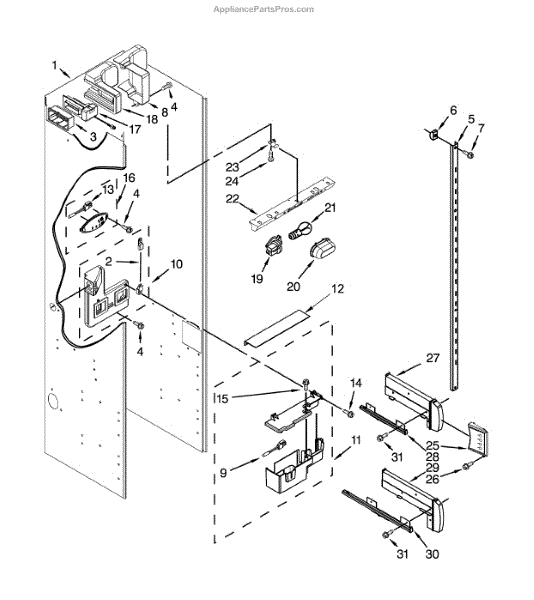 This baffle assembly directs flow inside the appliance to help ensure proper operation of the control area and internal airflow/water routing. Replaces a worn or damaged diffuser to restore intended flow behavior. What it does