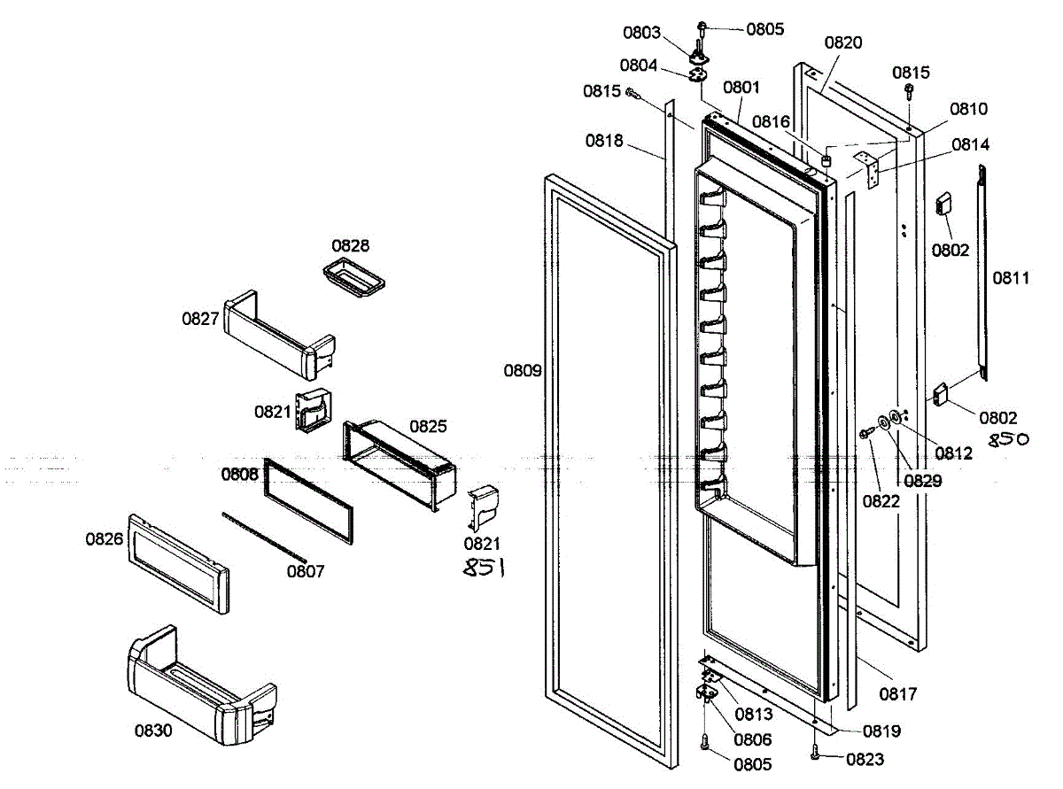 Replacement door rail for side-by-side refrigerators. Mounts inside the door to hold bins and shelves. Replace if cracked, broken, or missing.
