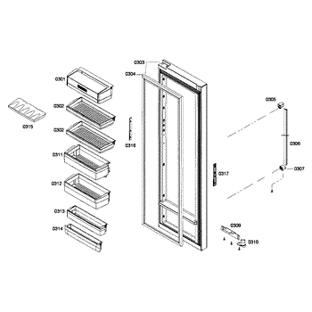 Replacement door tray for Bosch refrigerators. Installs on the refrigerator door to hold condiments and small items. Replace if cracked or broken.