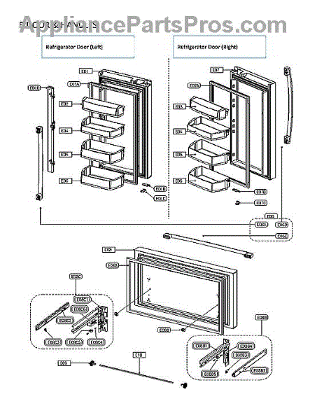 Parts for Winia WRFS26ABTD: Refrig And Frz Doors & Handles Parts