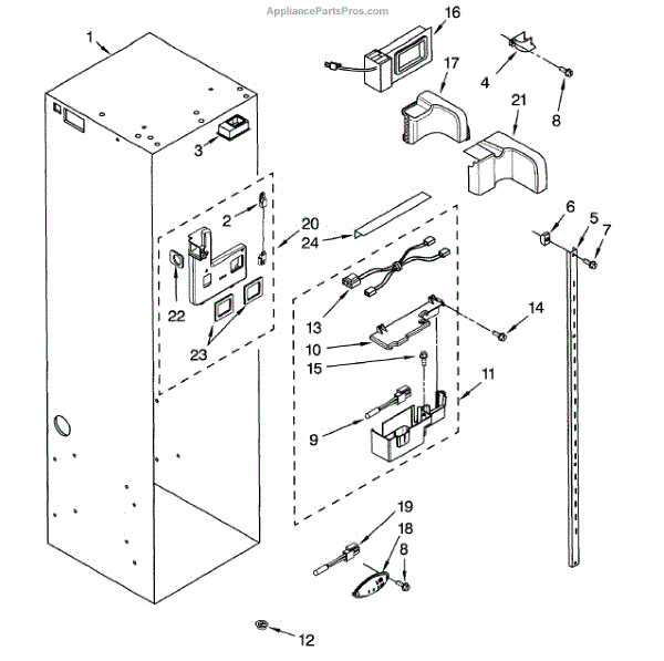 This baffle assembly directs flow inside the appliance to help ensure proper operation of the control area and internal airflow/water routing. Replaces a worn or damaged diffuser to restore intended flow behavior. What it does