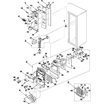 This refrigerator evaporator assembly includes two DA60-00040A spacers, two DA60-00041A spacers, one DA32-10105R sensor, one DA47-00095E sensor, mounting clip DA61-00453A and the defrost heater. Defrost heater not available separate.