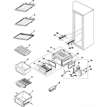 The Samsung Refrigerator Vegetable Shelf Cover Assembly is an essential component for maintaining optimal storage in your refrigerator. This genuine OEM part is designed to fit seamlessly with Samsung refrigerator models, ensuring a secure and precise fit. By replacing a cracked, missing, or damaged shelf cover with this Assembly Case-VEG LOW, you can restore the functionality of your vegetable crisper area. The cover provides robust protection for your fruits and vegetables, helping to keep them fresh longer by minimizing exposure to temperature fluctuations and spills. Additionally, the extra shelf space offered by this assembly allows for better organization, making it easier to store and access your produce. Crafted from durable materials, this part ensures longevity and reliable performance, enhancing the overall efficiency of your appliance. Installation is straightforward, allowing you to quickly replace worn-out components without hassle. Choose the Samsung Refrigerator Vegetable Shelf Cover Assembly to maintain the quality and functionality of your Samsung refrigerator, ensuring a better and more organized kitchen experience.