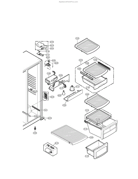 The Guide Rail is an OEM part for LG refrigerators. It is designed to support and guide the movement of refrigerator drawers, ensuring they slide smoothly in and out. This component helps in maintaining the proper alignment and functionality of the drawers, making it easier to access stored items.
