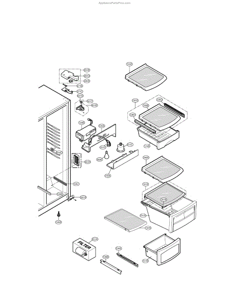 The Guide Rail is an OEM part for LG refrigerators. It is designed to support and guide the movement of refrigerator drawers, ensuring they slide smoothly in and out. This component helps in maintaining the proper alignment and functionality of the drawers, making it easier to access stored items.