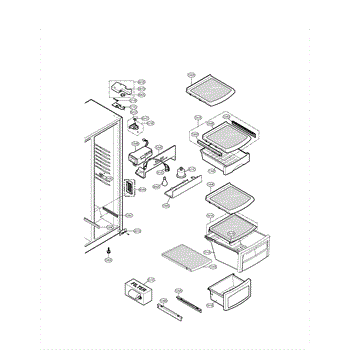 The Lower Hinge Assembly is an OEM part for LG refrigerators. It is responsible for supporting the refrigerator door and allowing it to open and close smoothly. The hinge assembly ensures the door stays aligned and securely in place, preventing cold air from escaping and maintaining the efficiency of the appliance.