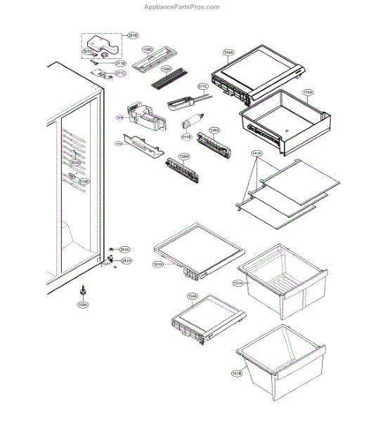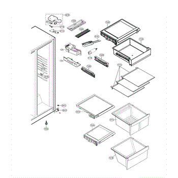 The Door Basket is an OEM part for LG refrigerators. This basket attaches to the interior of the refrigerator door, providing additional storage space for items such as bottles, jars, and other small containers, making it easy to organize and access frequently used items.