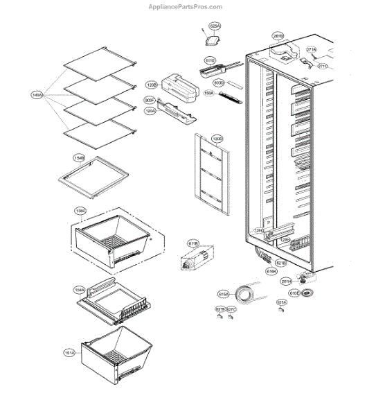 The Compressor is an OEM part for LG refrigerators. As the primary component that circulates refrigerant to chill the refrigerator and freezer compartments, it is crucial for proper cooling operation. The compressor works with the condenser fan and evaporator coil to regulate temperatures inside the refrigerator.