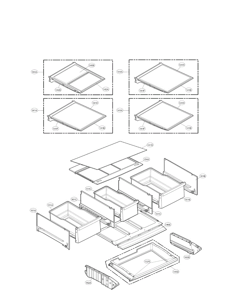 The Tray Assembly is an OEM part for LG refrigerators. This interior tray provides a dedicated storage shelf to organize items in the fresh food compartment. The tray is designed with edges to securely hold containers and packaging in place.