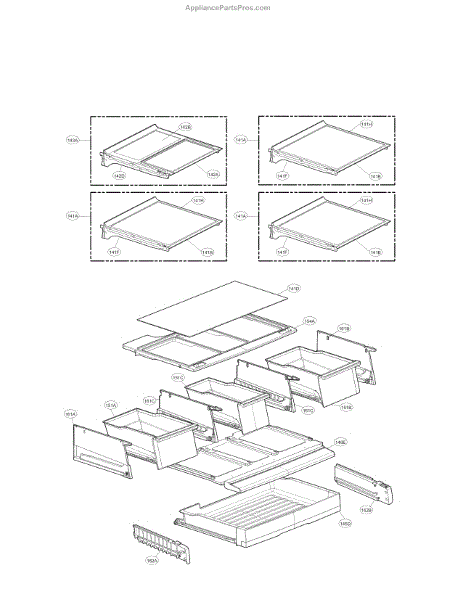 This tray cover assembly replaces a damaged cover above a storage tray or drawer. It restores a flat, supportive surface and smooth operation, keeping the interior organized and preventing items from tipping or the drawer from binding.