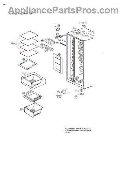 The Fan Guide Assembly is an OEM component specifically designed for LG refrigerators equipped with rear evaporator fans. This assembly guides proper airflow within the refrigerator compartment.