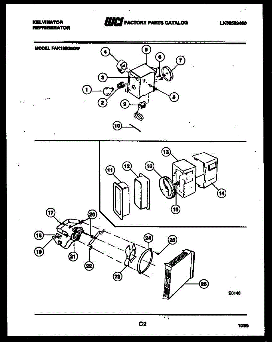 This fan motor mounting bushing is used in refrigerator fan motor assemblies to prevent vibrations between the fan motor and the surrounding components. Over time, the rubber on the bushing may become cracked or broken and fall off. Loud noises coming from the refrigerator's freezer section where it is mounted are a good indicator that the bushing needs to be replaced. To start, disconnect the refrigerator's power and empty the refrigerator and freezer's contents into an ice chest to keep them cold until the motor mount bushing is replaced. Open the freezer door and remove the plastic access panel on the back wall; the fan blade and motor are located behind it. Gently pull the fan blade off the center post. Remove the screws holding the motor in place and remove the motor. Take the old bushing off and install the new bushing. Replace the panel. Put the food contents back inside the freezer and refrigerator and restore the power.This motor mounting bushing is an authentic OEM replacement part sourced directly from the manufacturer. It is sold individually. It is designed for use in refrigerators manufactured by Frigidaire, Kenmore, Gibson, and Kelvinator.