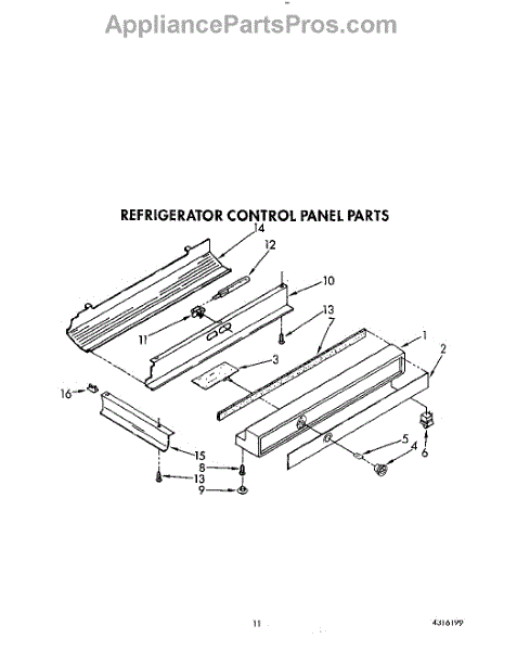 Parts for Kitchenaid KSSS48DWW00: 10 - Refrigerator Control Panel Parts