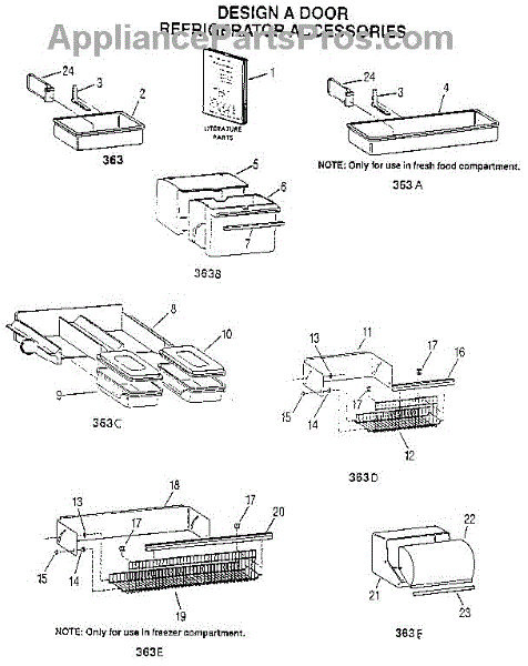Parts for Kenmore 3639001: Refrigerator Design A Door Parts