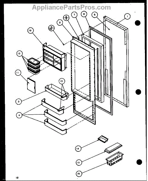 Parts for Amana 36261-P1115702W: Refrigerator Door (36561 / P1115501w) (36561 / P1115502w) (36568 / P1115503w) (36568 / P1115504w) Parts