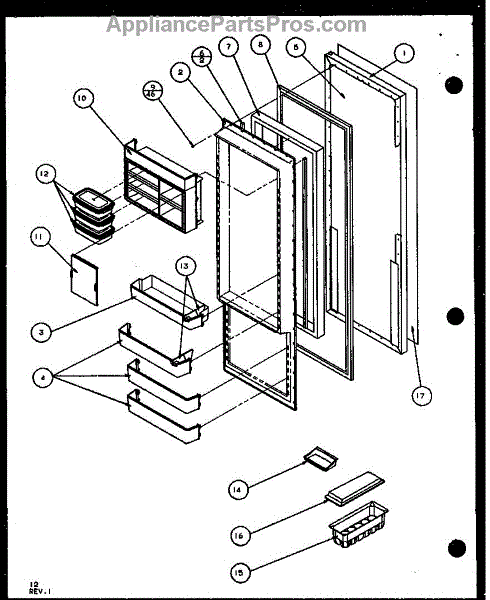Parts for Amana SCD25J-P1104013W: Refrigerator Door (Scd25j / P1104013w) (Scd25jb / P1104015w) (Scd25jp / P1104017w) Parts