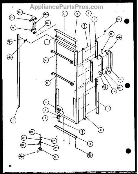 Parts for Amana 36261-P1115701W: Refrigerator Door (36571 / P1115505w) (36571 / P1115506w) (36578 / P1115507w) (36578 / P1115508w) Parts